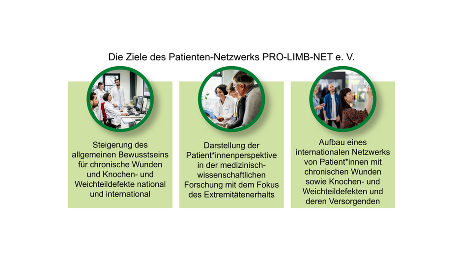 Möchten Sie die Perspektive und die Erfahrungswerte Betroffener in Ihren Studienantrag oder ihre bereits laufende Studie zu Diabetes mellitus, chronischen Wunden und/oder Extremitätenerhalt mit einfließen lassen? Erfahren Sie mehr über das Netzwerk PRO-LIMB-NET e. V. und die Möglichkeiten einer Zusammenarbeit in einem Forschungsprojekt.